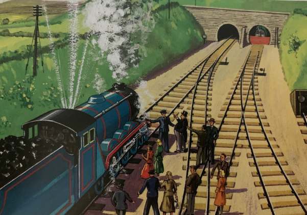 The Fat Controller couldn’t find an engine strong enough to pull Gordon’s Very Important Train. In desperation, he asked Henry. They knocked down the wall and put the rails back. Started Henry’s fire and drove him out of the tunnel.